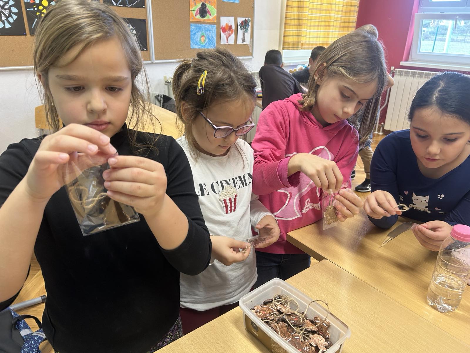 Kada su svi radovi bili gotovi, učenici su ih s zapakirali u ukrasne vrećice, spremne za predstavljanje na Školskom božićnom sajmu.