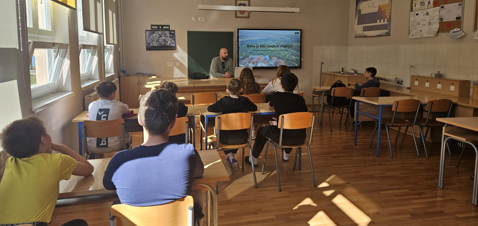 Naša škola je danas u sklopu izvannastavne aktivnosti Građanski odgoj i obrazovanje imala priliku ugostiti vlasnika agencije Kova PR, koja ima sjedište u susjednom Tupljaku, na temu medija i novinarstva.
