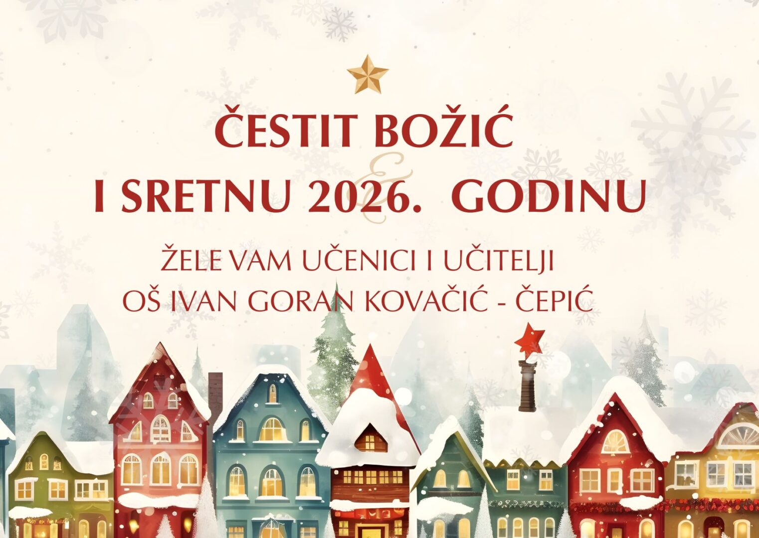 Zimski praznici  započinju 24. prosinca i traju do 9. siječnja 2026. godine. Predahnite i uživajte u blagdanskom ugođaju, a mi vas s veseljem očekujemo  u školskim klupama u ponedjeljak, 12. siječnja 2026. godine.