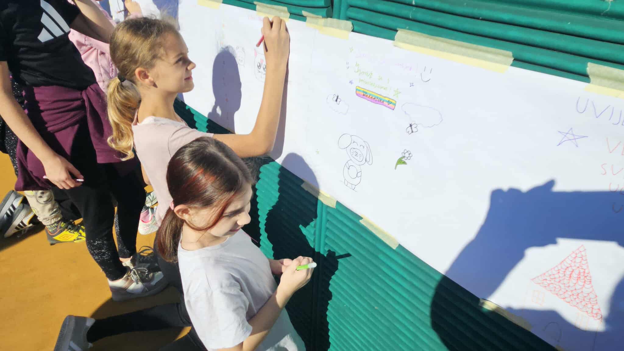 Dan je započeo likovnim izražavanjem na temu “Ja, moji prijatelji i moja zajednica”, a školski zid igrališta ispunile su dječje poruke o prijateljstvu, ljubavi i razumijevanju. Nakon toga uslijedile su sportske igre i mjerenja u sklopu priprema za školsku olimpijadu, što je dodatno potaknulo zajedništvo i timski duh među učenicima.