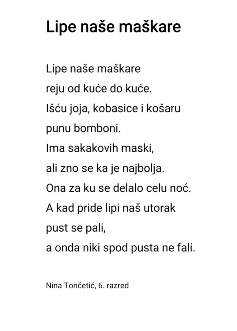 Zavičajna nastava: proglašeni pobjednici školskog natječaja povodom maškara – Tko su najbolji fotografi i pjesnici naše škole?