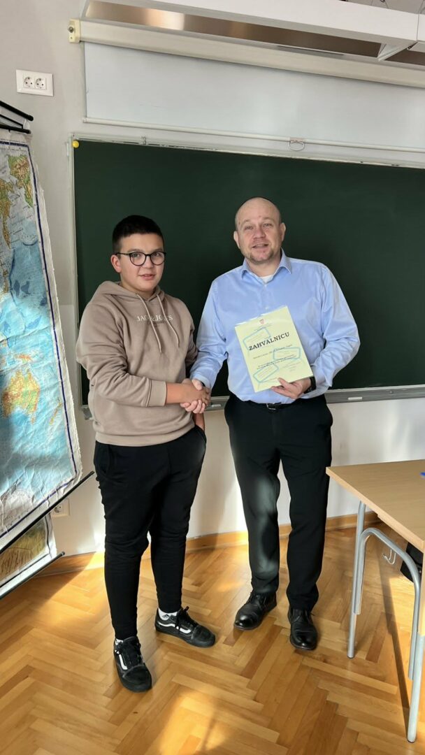 Policijski službenik IŽ Robert Pavleković uručio je priznanje i vrijednu nagradu našem Davidu. Bravo, Davide!