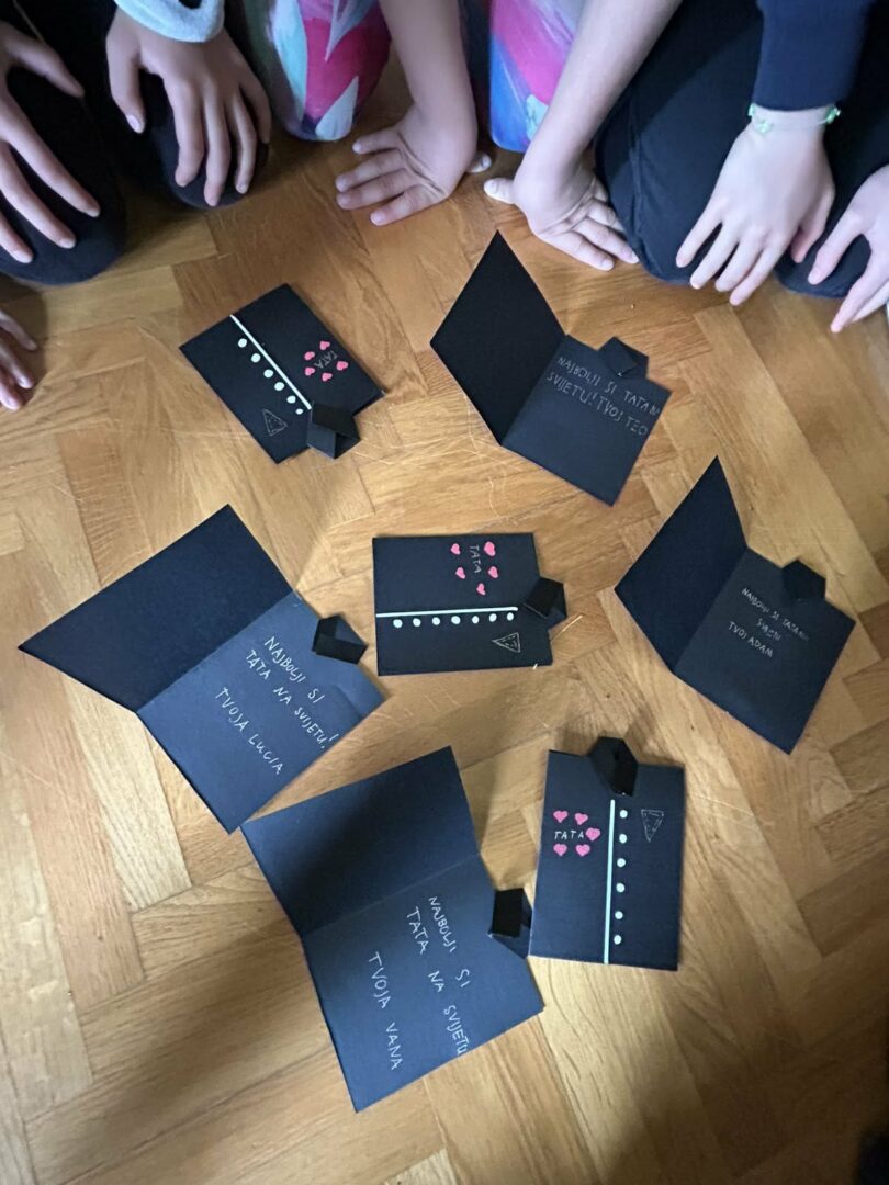 Povodom Dana očeva naši su Produženci bili pažljivi i vrijedni kao i obično pa su svojim očevima priredili iznenađenje u obliku čestitke. Jedva su čekali da im je uruče.